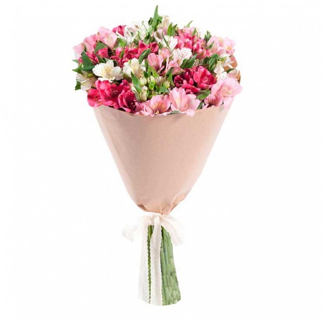 Состав: 15 альстромерий разноцветных, крафт, лента.
