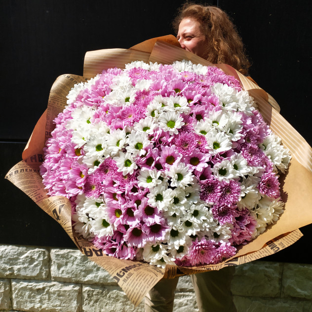 Нежный с летними нотками букет из кустовых хризантем.